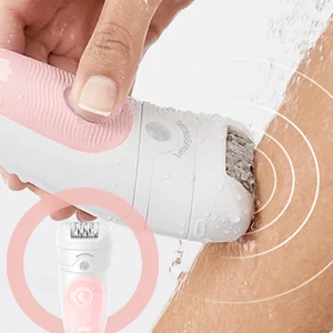 Introducing the Beauty Set 5, the starter 4-in-1 hair removal set for face & body. Epilate, shave, trim, cleanse. Epilator removes 4x shorter hair than wax for up to 4 weeks of smooth skin. SensoSmart technology ensures optimal pressure for best results. Includes shaver & trimmer attachment for hair removal in sensitive areas. The extra sensitive facial brush gently cleanses your skin. Cordless use up to 50 mins. 100% wet & dry for use in bath or shower to reduce discomfort. Epilation is virtually painless with regular use.